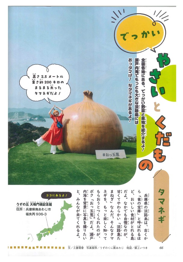Awaji Island in Hyogo Prefecture has long been called a "treasure house of food" because of the delicious ingredients it produces. The island is especially proud of its sweet and tender Awaji Island onions. I created "O-O-Onion®" to help people learn more about onions in a fun way. People come to take pictures with the Seto Inland Sea in the background.